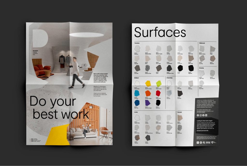 Ready to drastically stand out from their competition, solid surface company Durasein had an energetic new brand but needed a partner to help capture the attention of creative designers unfamiliar with their product and capabilities.